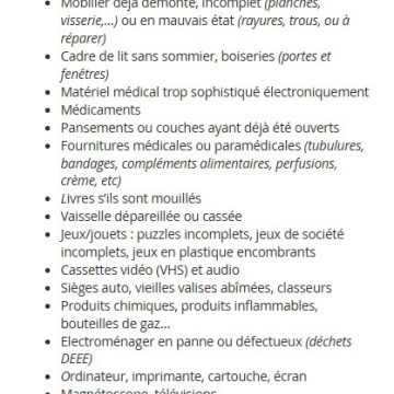 Attention : tous les objets ne sont pas acceptés lors des dépôts. La liste des objets approuvés est à retrouver dans la partie "documents".